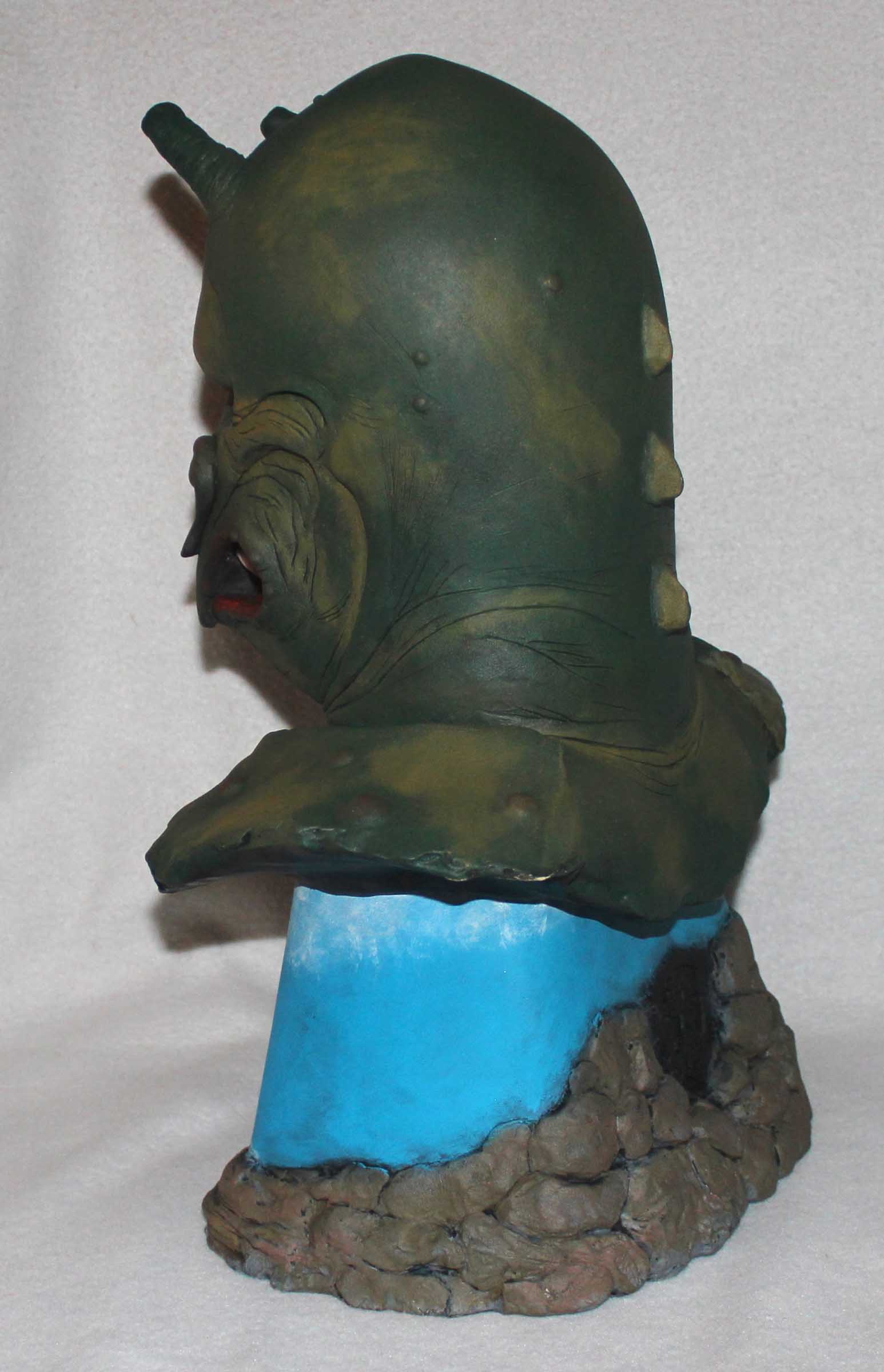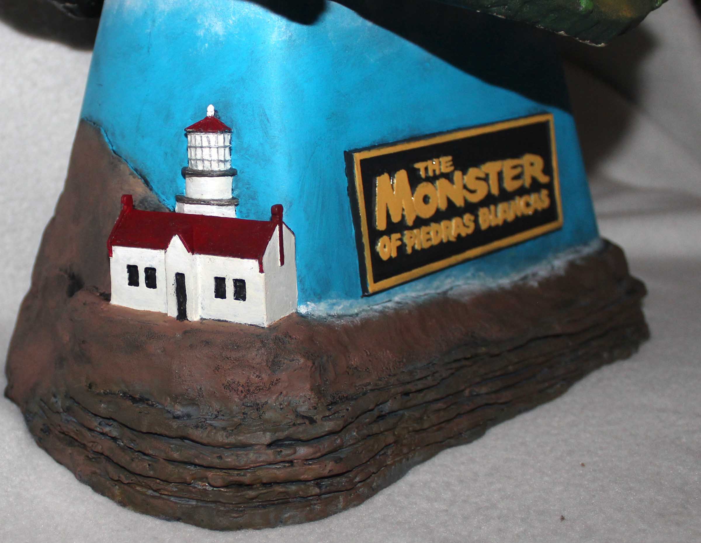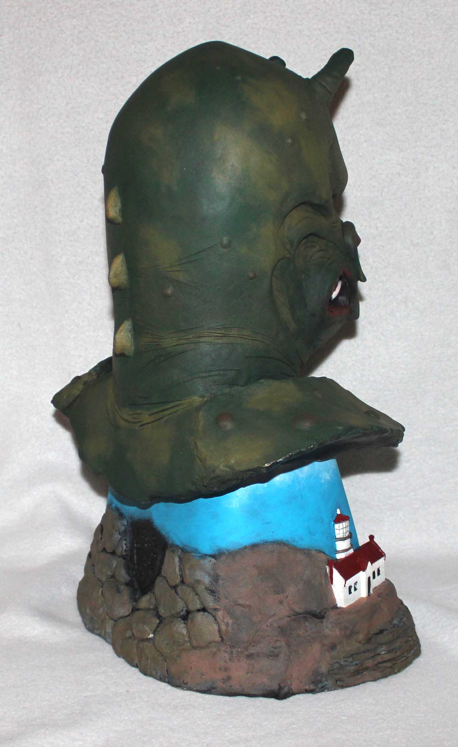 The Monster of Piedras Blancas is considered a ‘poor man’s’ Creature From the Black Lagoon.  I like them both.  This all-resin 3/4th scale “Big Head” is from Earth Bound Studios.  On the simple base is the lighthouse on the shoreline as depicted in the film.  All paints are acrylics.