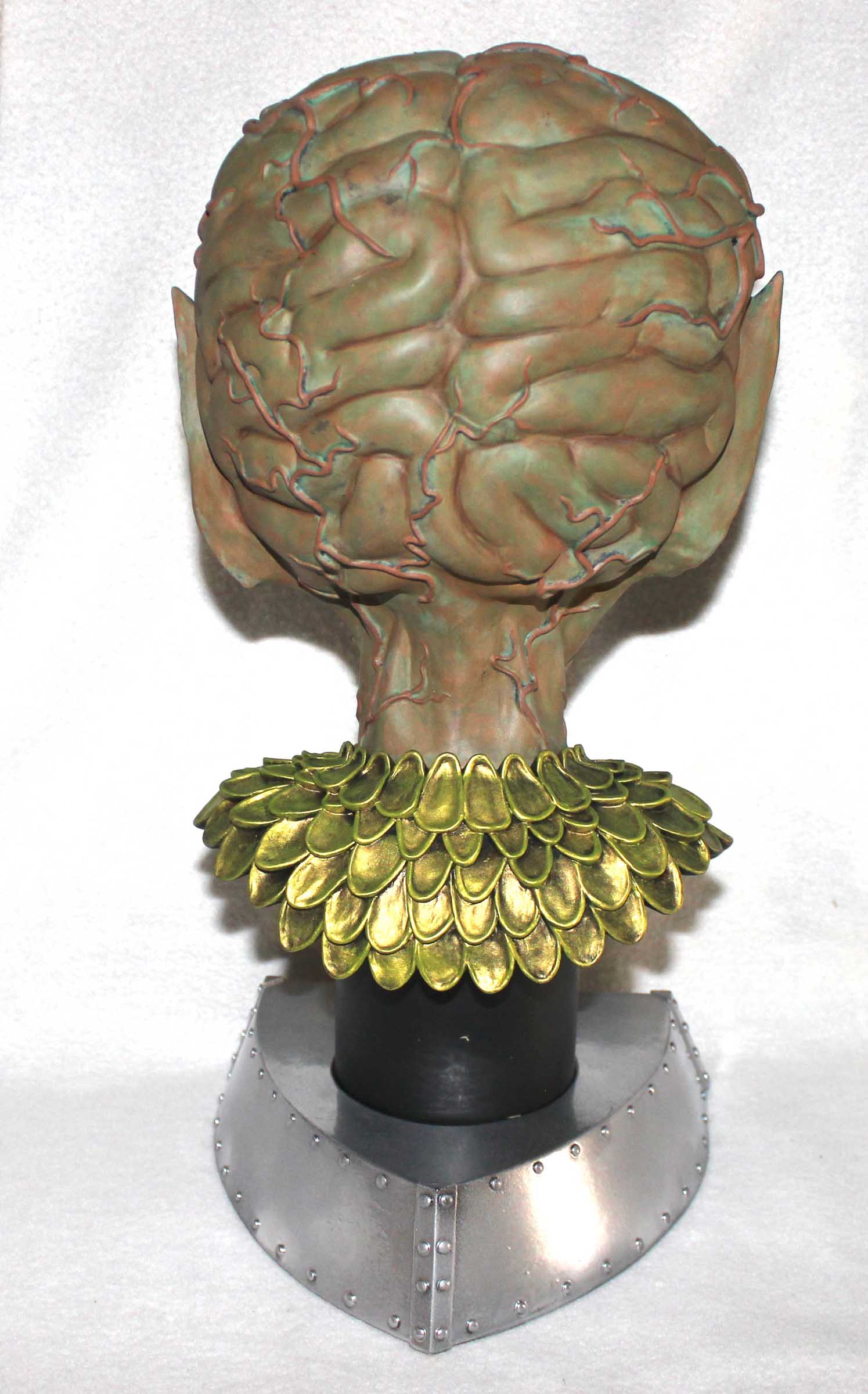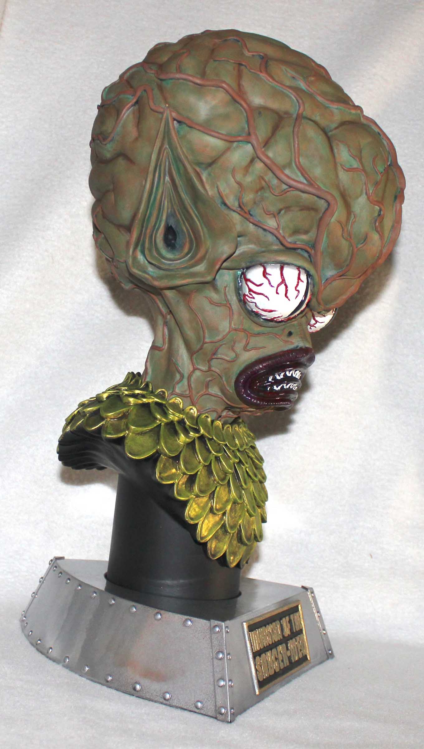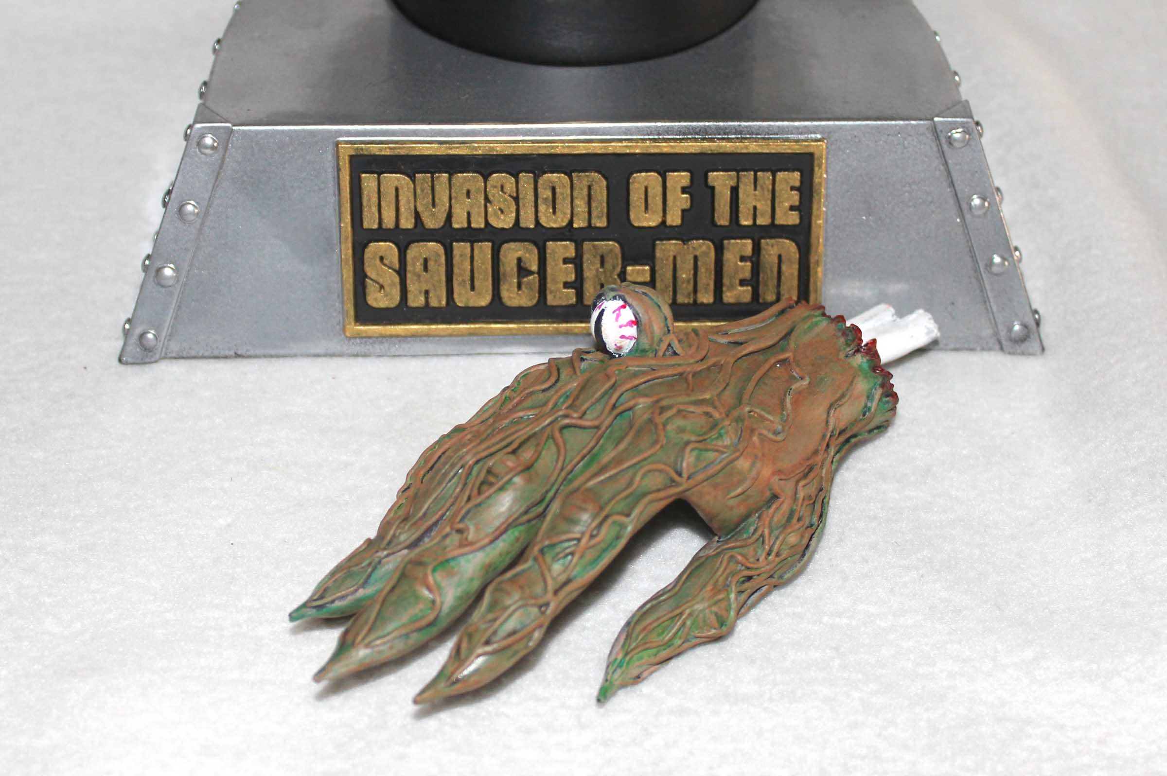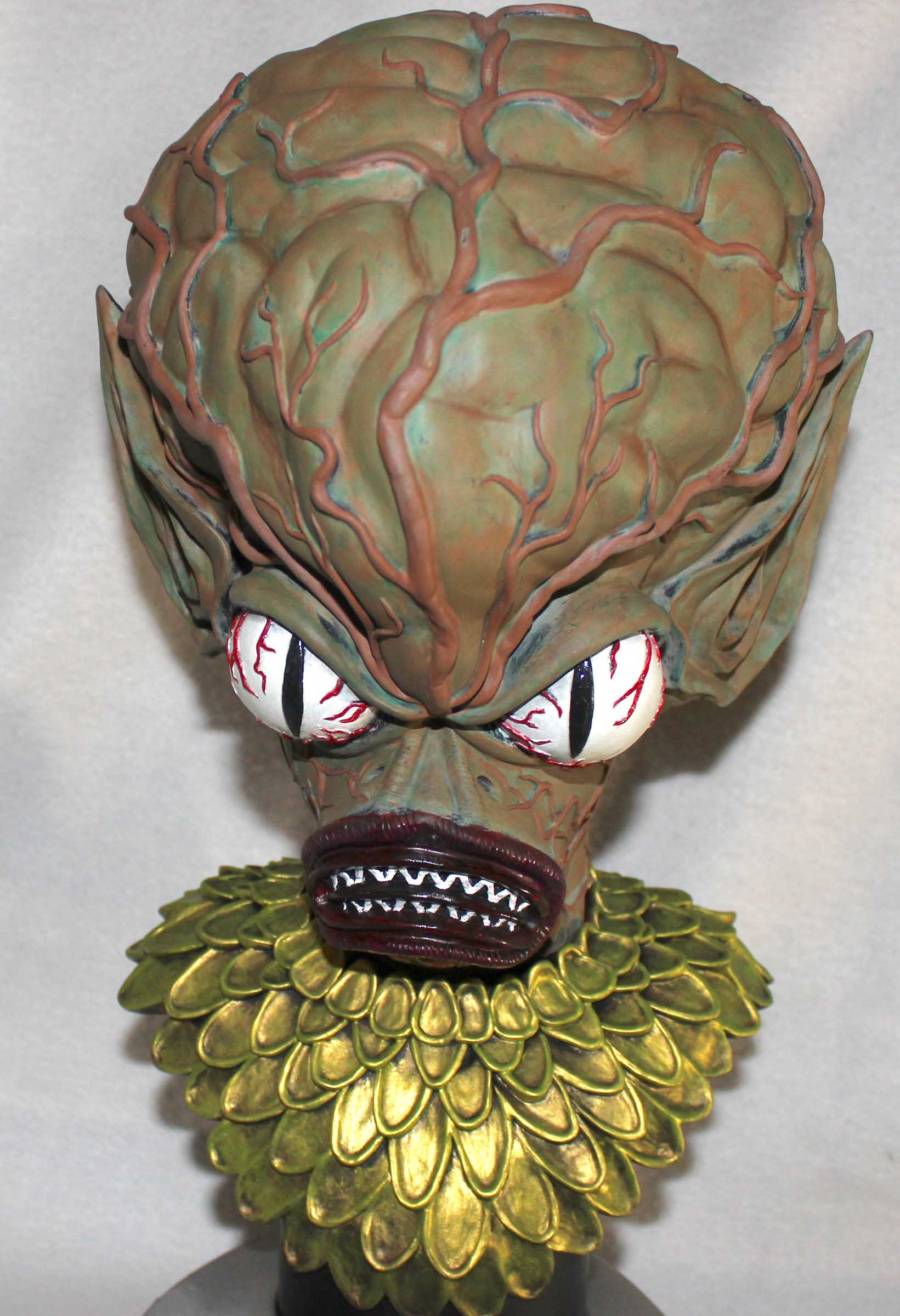 From Earth Bound Studios and sculptor, Steve West, is a 1/2 scale resin Big Head from the film, Invasion of the Saucer-Men.  The original design of the Martian was done by Paul Blaisdell and what bug-eyed monsters are all about.  Included with the bust is a severed hand.  All paints are acrylics.